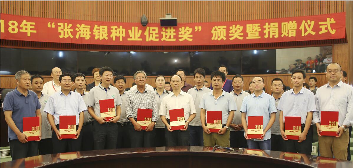會上,基金會副理事長、“張海銀種業(yè)促進(jìn)獎”評審委員會李立秋主任宣讀2018“張海銀種業(yè)促進(jìn)獎”獲得者名單。特別獎獲得者1名:安徽荃銀高科種業(yè)股份有限公司水稻科研創(chuàng)新團(tuán)隊;一等獎獲得者2名:中國水稻研究所所長程式華,河南豐德康種業(yè)有限公司董事長兼首席育種家鄭天存;二等獎獲得者4名:遼寧省農(nóng)科院創(chuàng)新中心副主任陸曉春,湖南省種子協(xié)會秘書長閔軍,廣西賀州市農(nóng)業(yè)科學(xué)院研究員蒙秀鋒,河北河間市國欣農(nóng)村技術(shù)服務(wù)總會會長盧懷玉;三等獎獲得者2名:山東中農(nóng)天泰種業(yè)有限公司總經(jīng)理劉寧,安徽蚌埠永生農(nóng)業(yè)科技有限公司總經(jīng)理王其斌;特別獎獎勵人民幣10萬元,一、二、三等獎分別獎勵人民幣8萬元、5萬元、3萬元,共計52萬元。本次8人1團(tuán)隊獲獎?wù)咧惺窃谒?、小麥、玉米、棉花、甜葉菊等科研領(lǐng)域開拓創(chuàng)新、作出貢獻(xiàn)的優(yōu)秀種業(yè)人才。