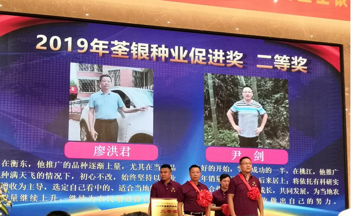 ?? ?隨后,張海銀種業(yè)基金會鄭滿生監(jiān)事宣讀了張海銀種業(yè)基金會“荃銀種業(yè)促進獎”2019年頒獎決定文件。大會向38名在優(yōu)質(zhì)水稻推廣和良種服務等方面取得優(yōu)異成績的個人頒發(fā)了“荃銀種業(yè)促進獎”專項獎。