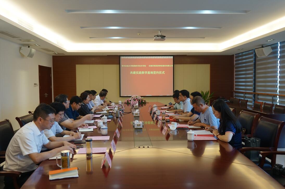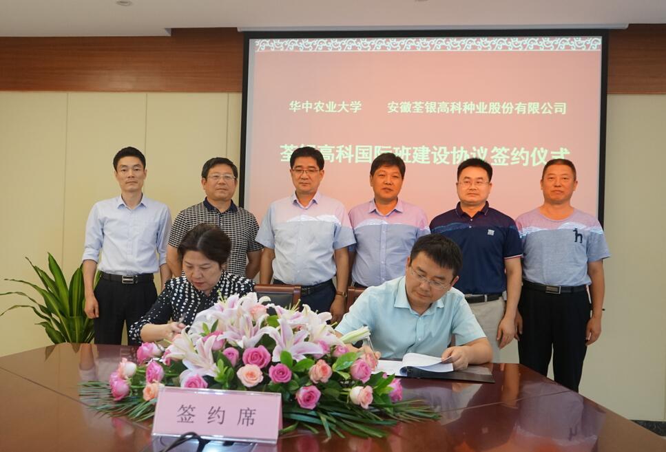 ??? 2019年8月12日,華中農業(yè)大學校黨委常委、組織部長李向東,植物科學技術學院黨委書記周雄,植物科學技術學院院長嚴建兵一行蒞臨荃銀高科,雙方簽署荃銀高科國際合作班建設協議并座談交流,荃銀高科副董事長、總經理張琴,副總經理、首席技術官、荃銀農科院院長張從合,副總經理朱全貴等領導熱情接待了李向東常委一行。